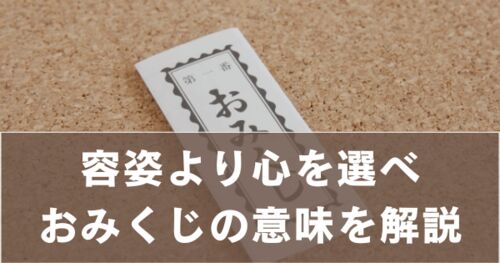 おみくじで「容姿より心を選べ」が出た意味とは?恋愛の本質と幸せの導き方 おみくじを引いたとき、「容姿より心を選べ」という言葉に出会ったことはありませんか。 一見シンプルなこの一文には、恋愛における深い教えと人生のヒントが隠されています。 それ…